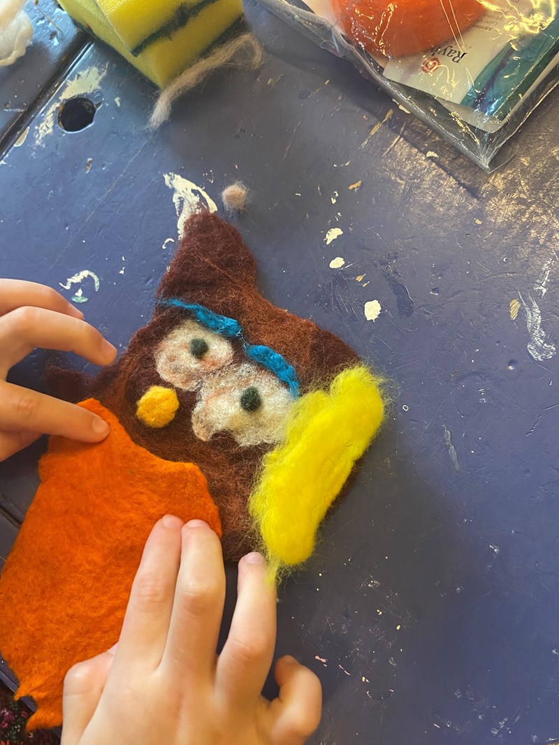 Atelier wolvilten was een succes. Nat en droog verwerken van geverfde merinowol. Een echte metamorfose. Het doel was om Koet te maken. Die hebben wij met zeepsop en bubbeltjesplastic nat gevilt. Daarna de details met speciale viltnaalden geprikt op een torentje van sponsen. De naalden zijn…